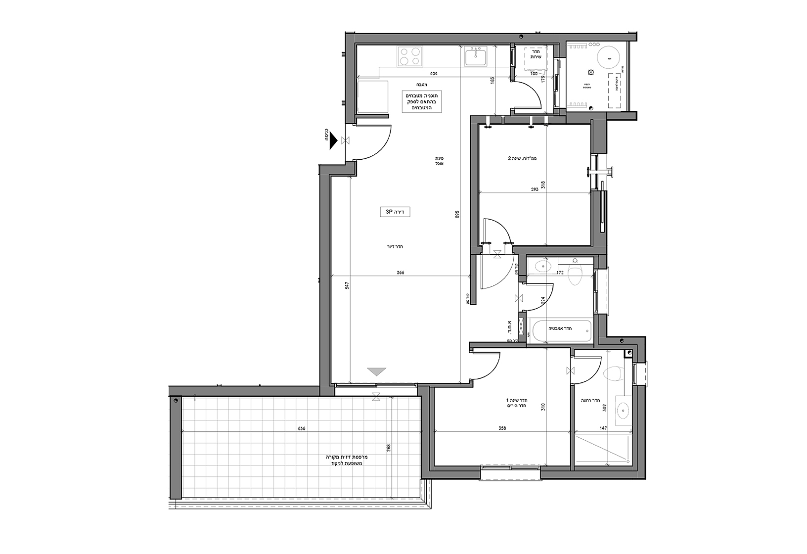 דירת 3 חדרים | טיפוס 3P | קומה 1
